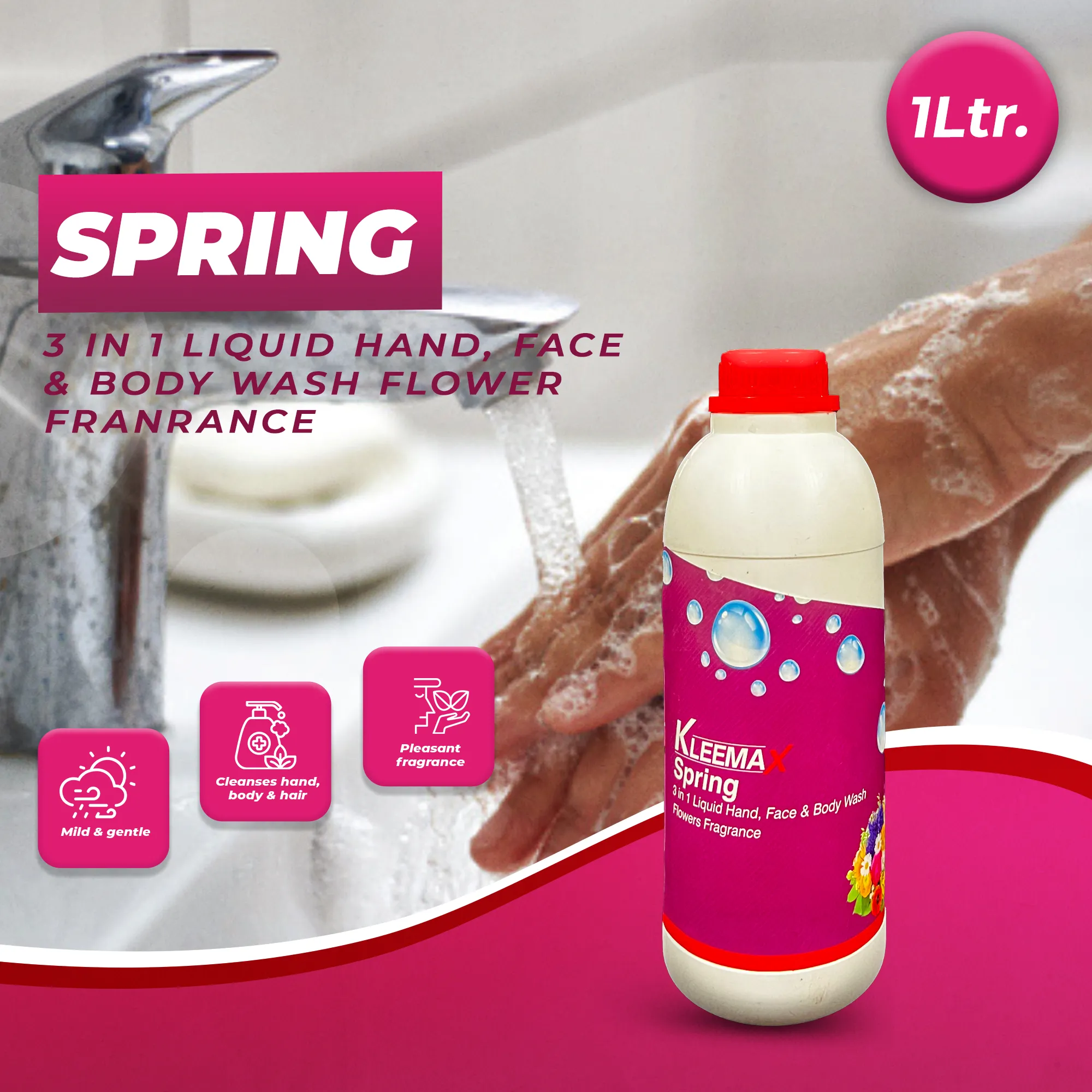 Spring Multipurpose Hand Wash (Flower Fragrance) 1 Ltr